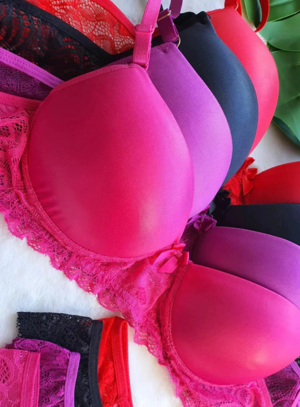 O Conjunto Rubia é uma peça sensual e sofisticada, confeccionada em uma combinação de cirré e renda, que garante brilho e elegância. O sutiã possui detalhes em renda delicada e alças ajustáveis, com regulagem em metal ou plástico, dependendo da cor, proporcionando um ajuste confortável e seguro. O toque moderno do tecido cirré confere um visual ousado, perfeito para quem deseja destacar-se.